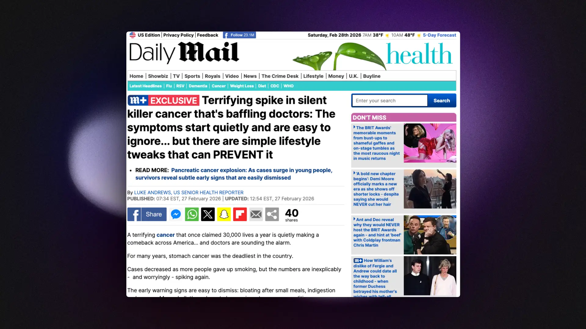 Daily Mail: Rising Stomach Cancer Cases Among Young Adults